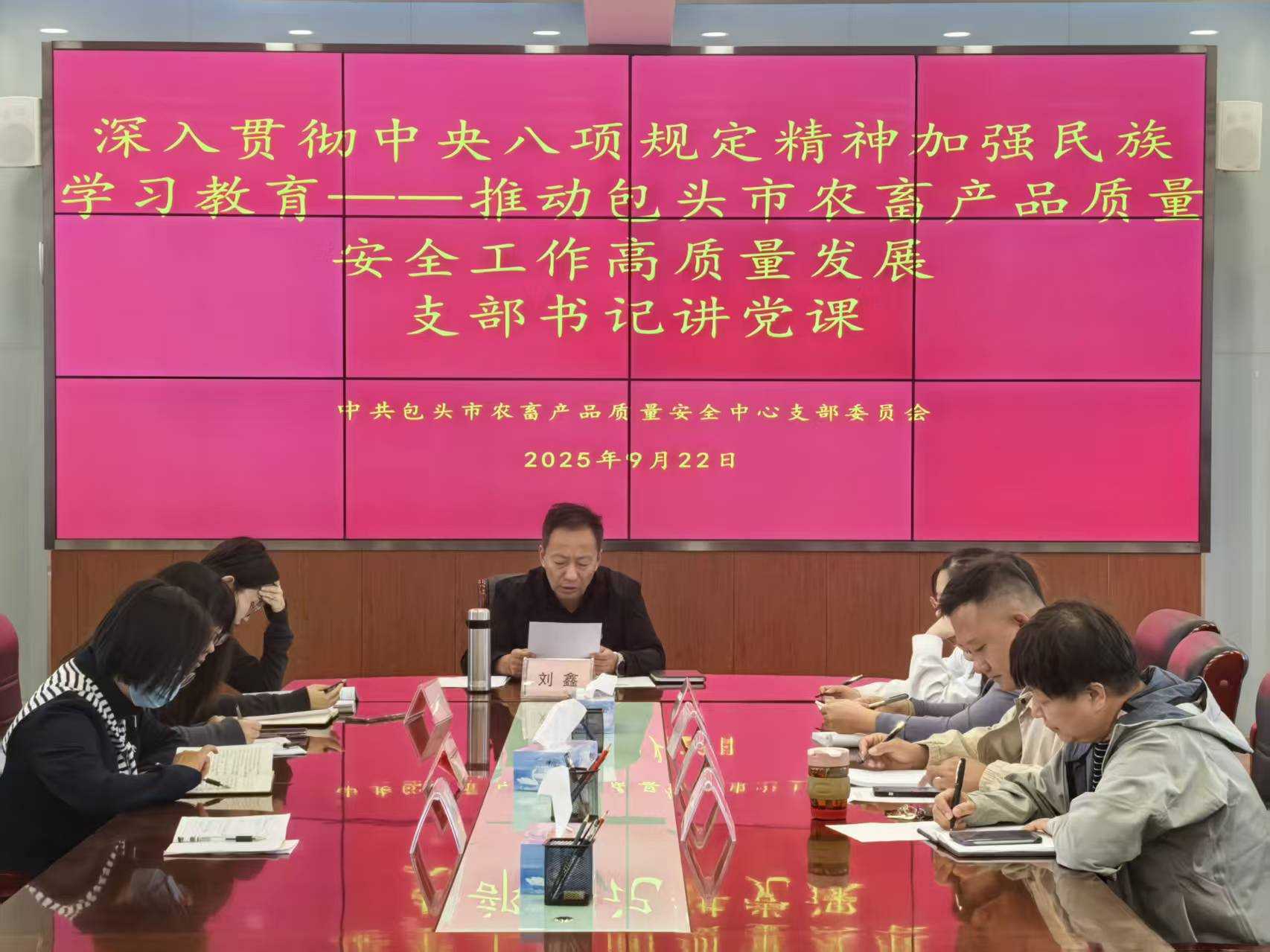 2025年9月是第42个全区民族团结进步活动月,为做好第42个全区民族团结进步活动月工作,结合 “三会一课”,9月22日市农畜产品质量安全中心党支部书记讲党课——深入贯彻中央八项规定精神加强民族学习教育。