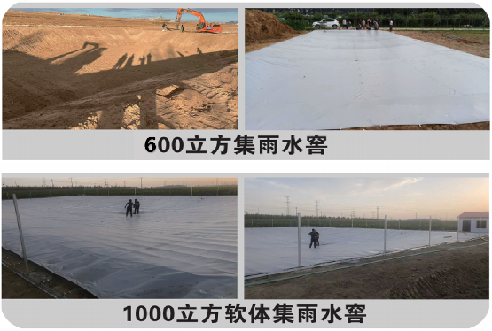 通过2021-2022年期间我市实施的旱作高标准农田项目,梳理总结了以下四项软体水窖特点:一是材料耐严寒(-30℃)、耐高温(70℃),气候适应性强,储水可过冬;二是密封性强,不渗漏,不氧化、不开裂,抗震抗损,抗紫外线,防老化,正常使用方式可用10-15年;三是地形匹配能力强,适用于各种地形地貌,保护环境,不硬化土地,不破坏植被;四是可以提高灌溉水水温,促进作物生长,存储水质好,无绿苔、无异味。