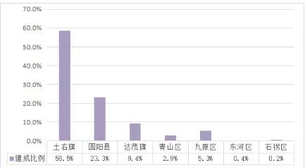 其中,土默特右旗已建成高标准农田84.96万亩(包括2019年以前建成的89个项目,总面积59.11万亩),固阳县已建成高标准农田33.76万亩(包括2019年以前建成的26个项目,总面积14.35万亩),达茂旗已建成高标准农田13.68万亩(包括2019年以前建成的26个项目,总面积8.36万亩),九原区已建成高标准农田7.67万亩(包括2019年以前建成的8个项目,总面积5.17万亩),东河区已建成高标准农田4.19万亩(包括2019年以前建成的4个项目,总面积2.05万亩),青山区已建成高标准农田0.55万亩,石拐区已建成高标准农田0.3万亩。